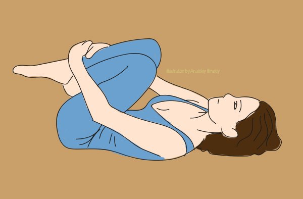 W pozycji pozostań przez około 3 minuty, a następnie powtórz ćwiczenie na drugą stronę. Ta pozycja najkorzystniej wpłynie na Twoje plecy. Pomoże ukoić uciążliwy ból kręgosłupa i kości ogonowej.