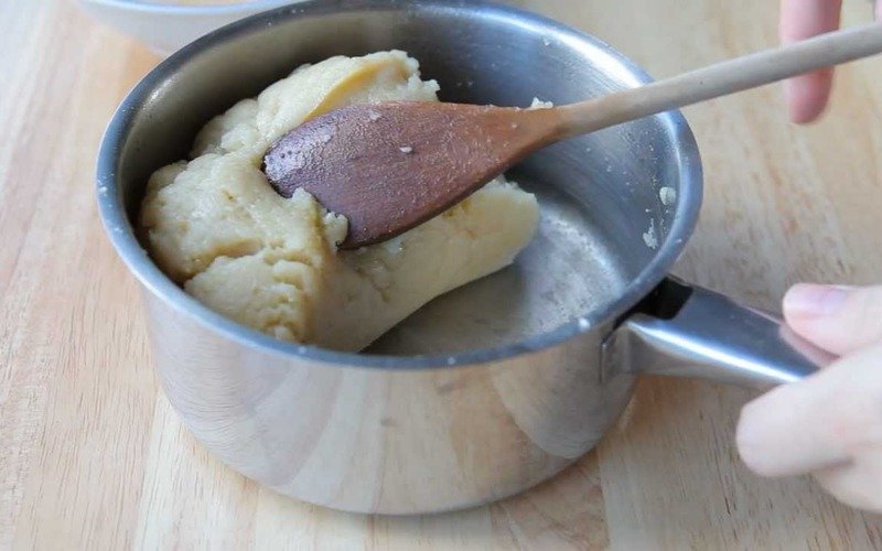 Weź rondelek. Wlej do niego wodę, a także masło i zagotuj. Kolejno dodaj mąkę, ale najpierw ją przesiej przez sitko. Nie zapomnij stale mieszać tak, by ciasto było jednolite, bez grudek. Następnie masę trzeba zdjąć z ognia i dodać jajka. Pamiętaj, że jajka mają rozpuścić się cieście.