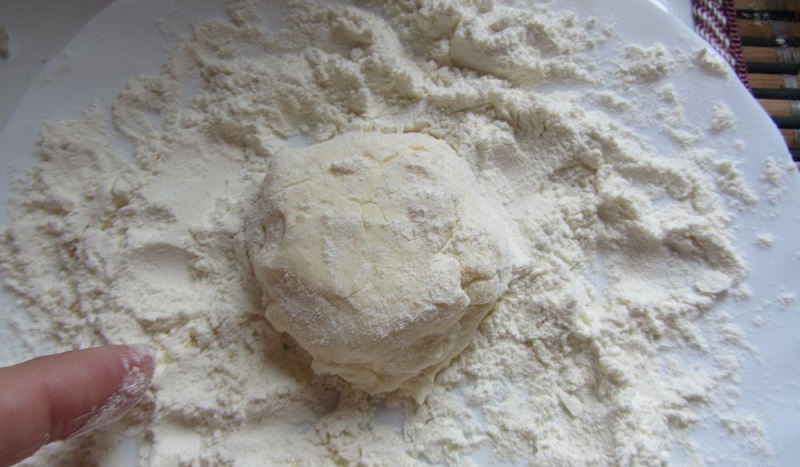 Margarynę wcześniej wyjąć z lodówki, tam by łatwo można było ją rozgnieść. Jak już to zrobimy, dodajemy śmietanę, mąkę i proszek do pieczenia. Wszystko zagnieść razem do momentu, aż ciasto nie będzie przyklejać się do dłoni, jednocześnie powinno być miękkie.