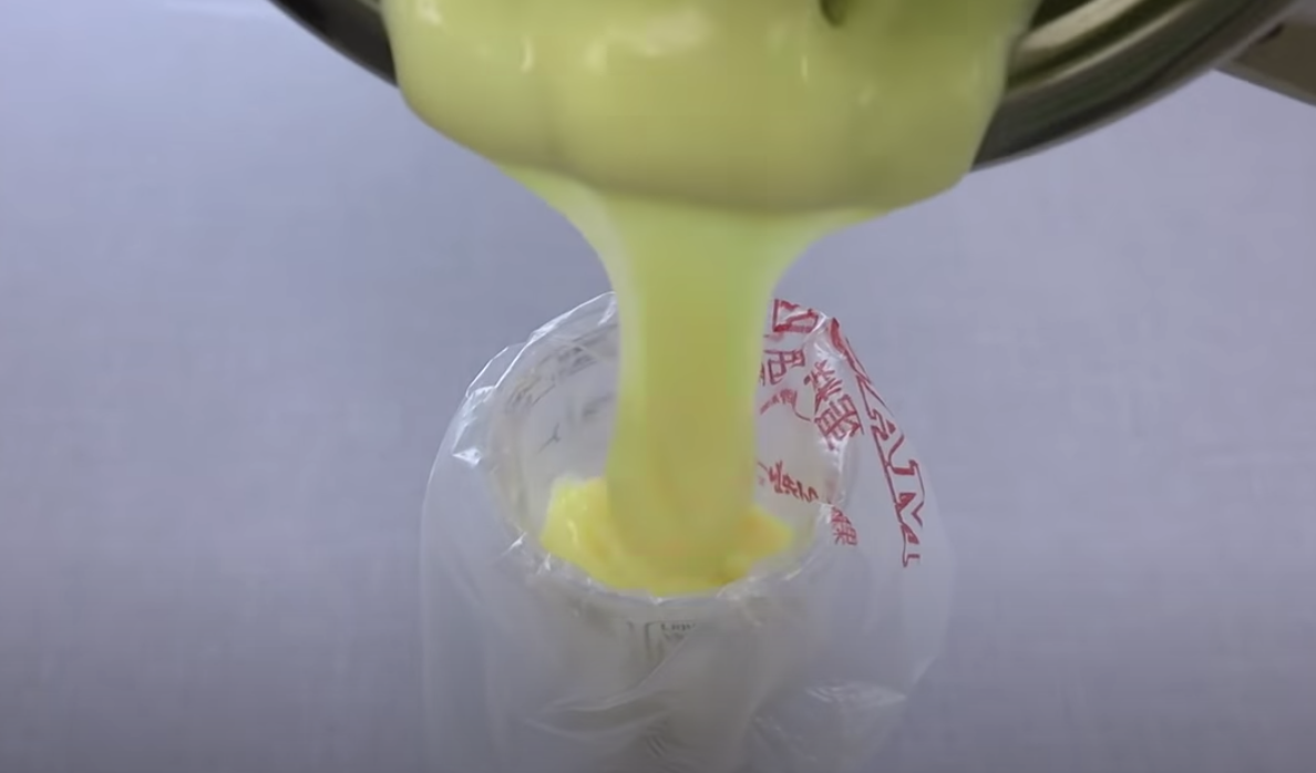Na początku przygotowujemy krem. W misce mieszamy jajka z cukrem, a następnie dodajemy mąkę, mleko i ugotowany wcześniej gęsty budyń.