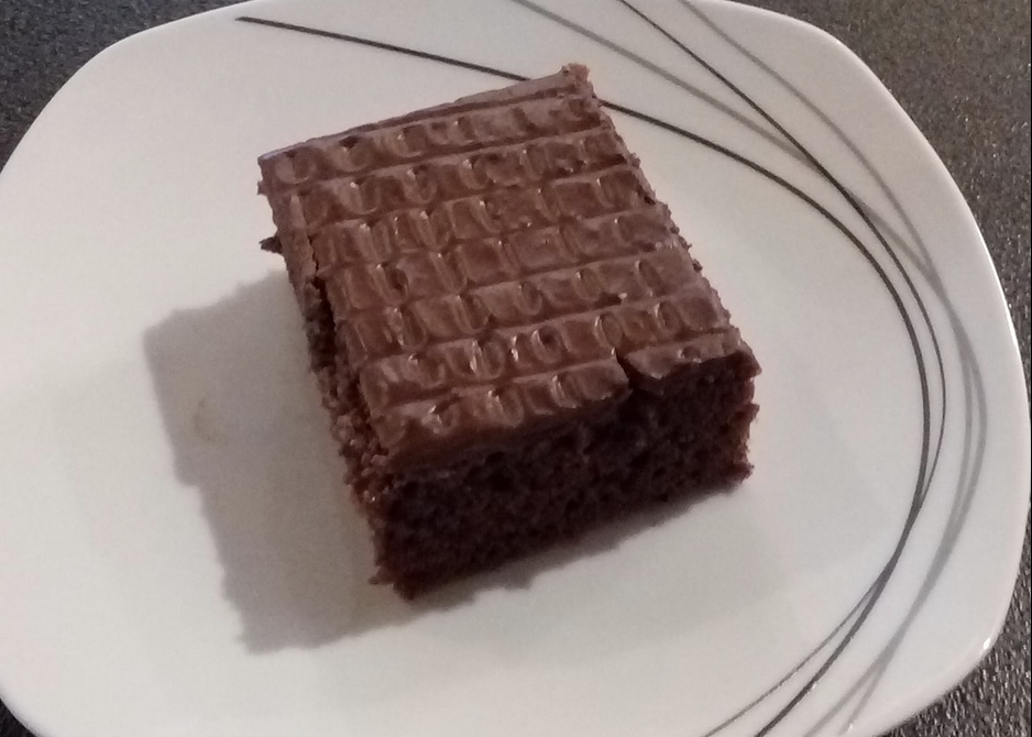 Dodajemy również jabłka i łączymy. Większą foremkę (ok. 30×40) wykładamy papierem do pieczenia. Wlej ciasto i piecz w temperaturze 180°C przez około 30 minut. Jeśli masz mniejszą formę, ciasto będzie wyższe, piecz wtedy dłużej w niższej temperaturze 170°C. Po upieczeniu posmaruj ciasto dowolnym dżemem.