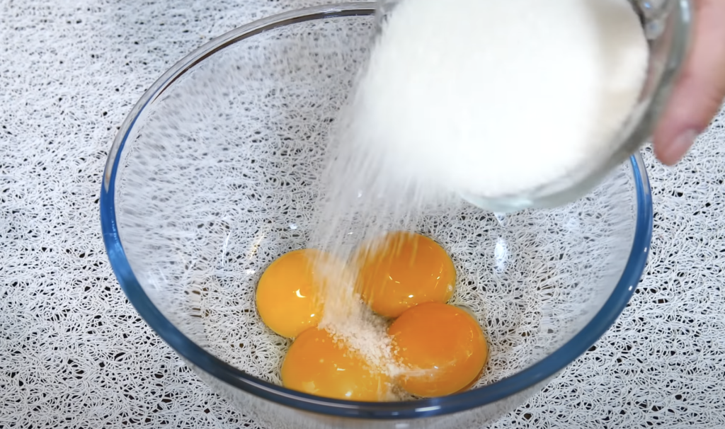 W oddzielnej misce ubij żółtka z cukrem.
