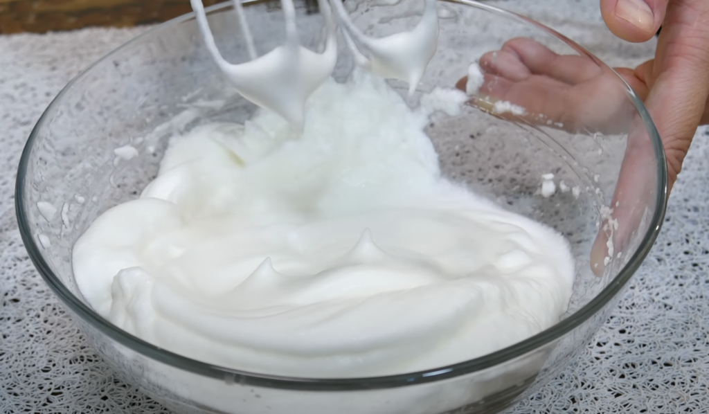 W białkach dodaj szczyptę soli i ubij na sztywno.