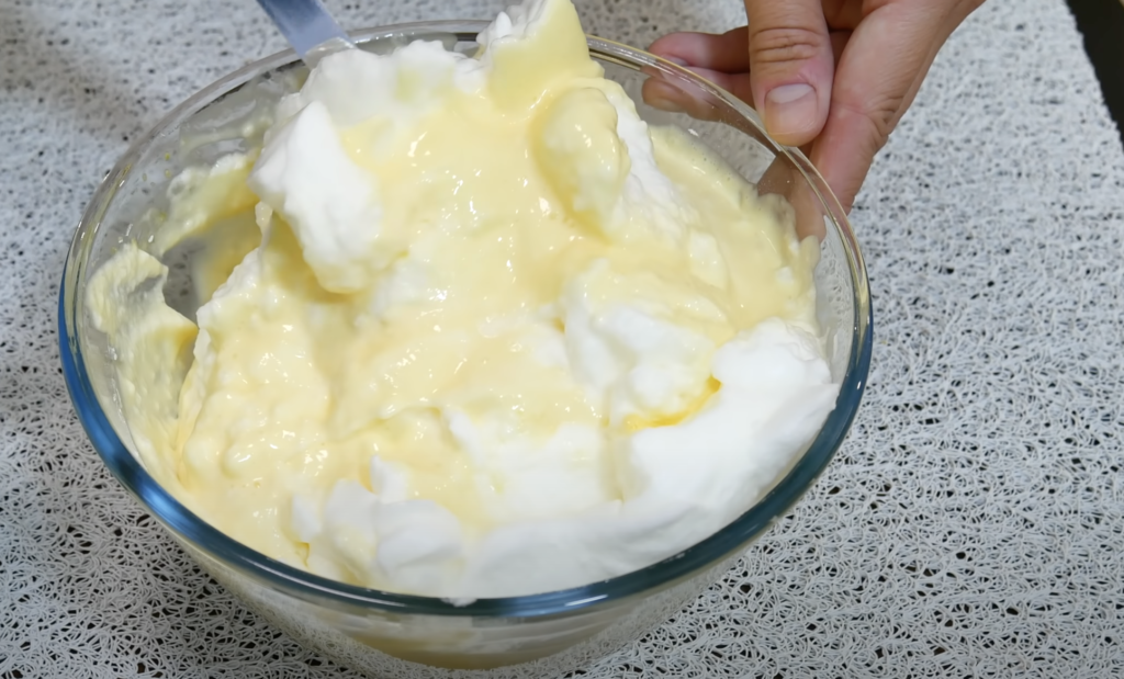 Ostrożnie połącz białka z masą żółtek, utrzymując puszystość.