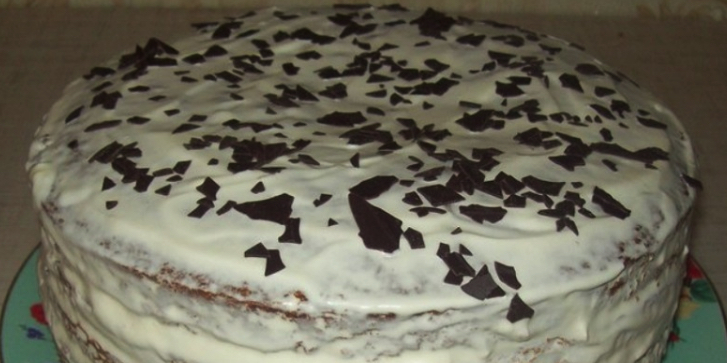 Wymieszaj śmietanę z drugą szklanką cukru. Tak powstałą masą posmaruj każde z ciast, układając je kolejno na sobie. Na końcu posmaruj także boki i górę.