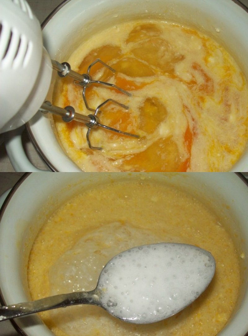 Połącz sodę z octem i wraz z jajkami dodaj do ciasta. Cały czas mieszając dodawaj powoli mąkę.