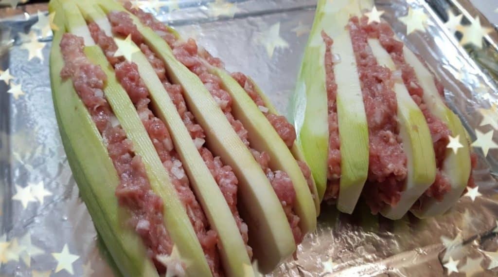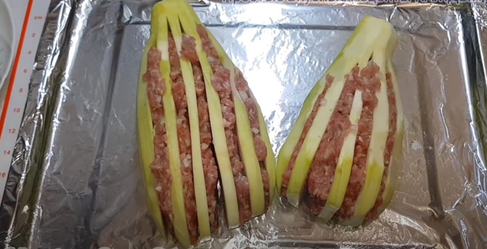 Gotowe cukinie połóż na wyłożoną folią aluminiową blasze.