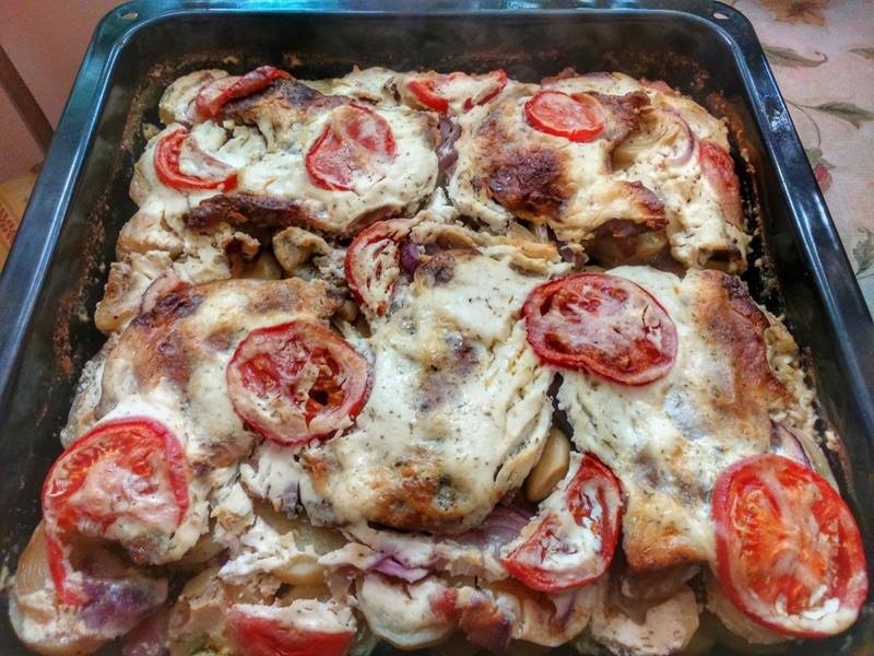 • 2 kg ziemniaków obranych i pokrojonych w plastry