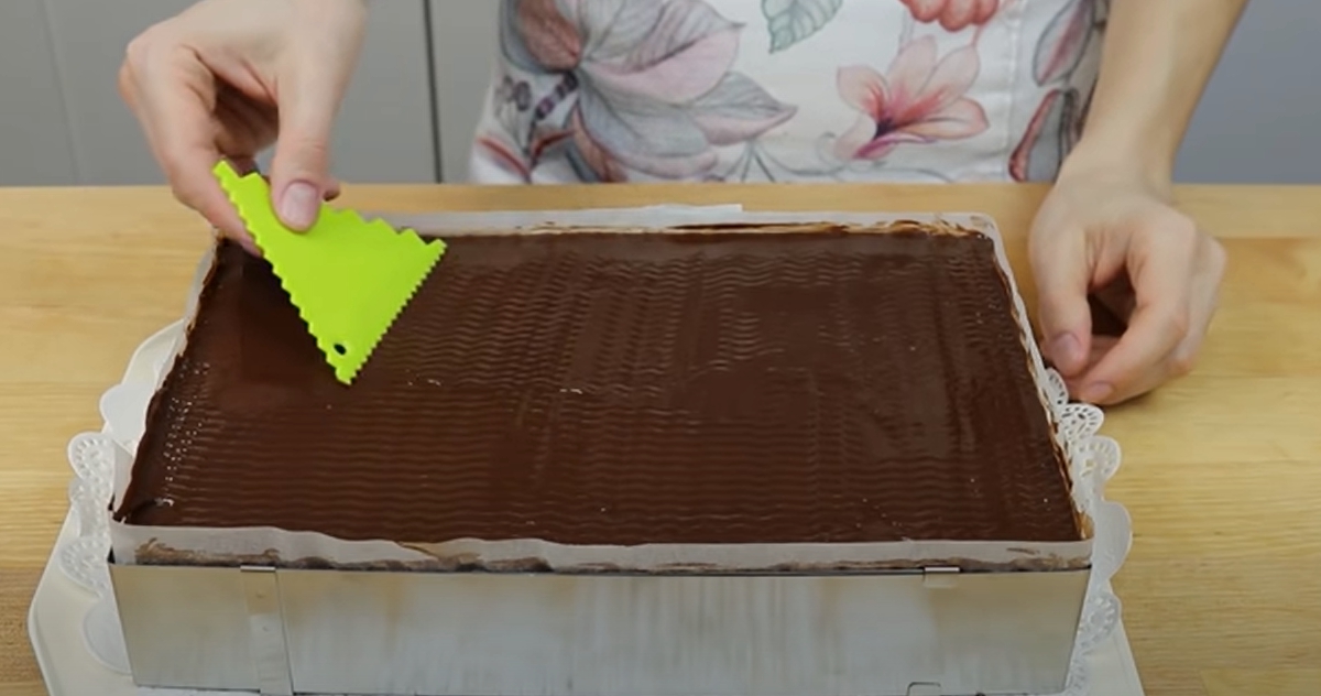 Możesz ozdobić jego wierzch na przykład przy pomocy ząbkowanej łopatki. Włóż ciasto na przynajmniej 6 godzin do lodówki. Gotowy deser najwygodniej pokroić nożem zamoczonym w ciepłej wodzie.