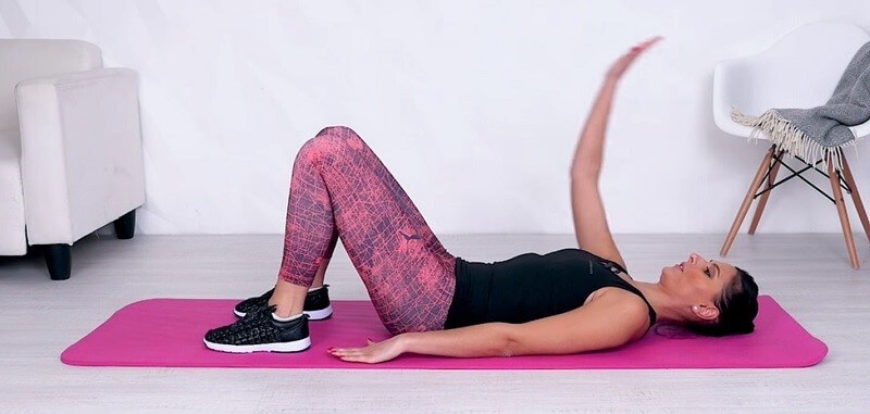 Połóż ręce na podłodze i połóż się. Wykonaj wdech i unieś rękę do góry, a następnie delikatnie opuść ją do tyłu. Następnie wykonaj wydech i przywróć ramię do pozycji wyjściowej. Ćwiczenie to można wykonywać przez 30 sekund na każdą rękę, aby uzyskać widoczne rezultaty.