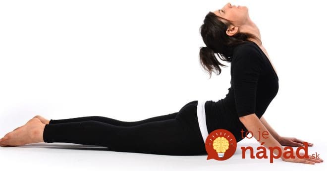 Leżąc na plecach, umieść ręce pod ramionami. Wznieś ciało, wyprostuj ramiona, zginając dolną część pleców i klatkę piersiową. Wydłużaj szyję, utrzymując pozycję na 10-15 sekund, a potem powoli wracaj.