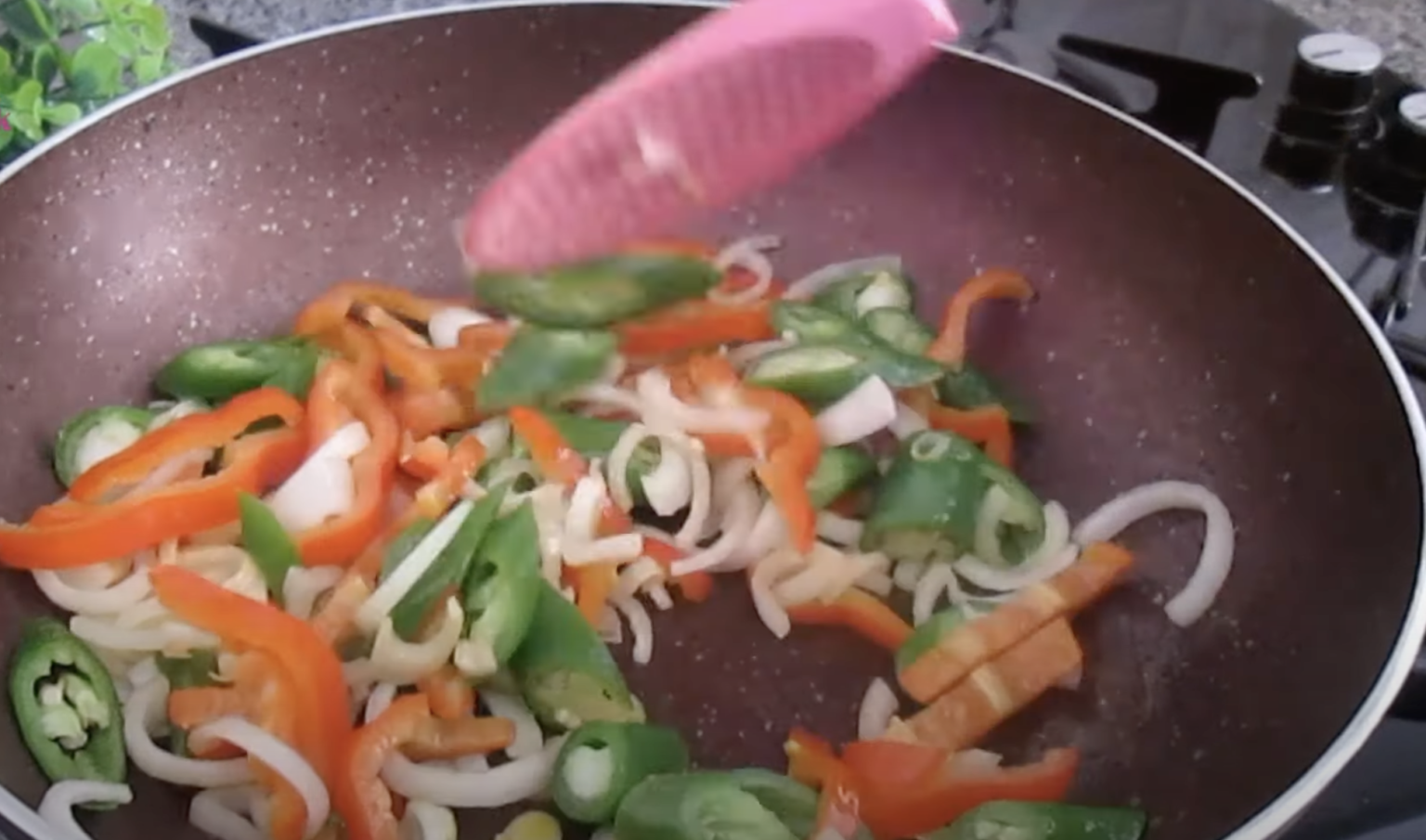 Brokuły podziel na różyczki i gotuj przez kilka minut w osolonej wodzie z łyżką mleka. Odcedź brokuły. Cebulę i paprykę umyj i pokrój w paski. Podsmaż na odrobinie oleju.
