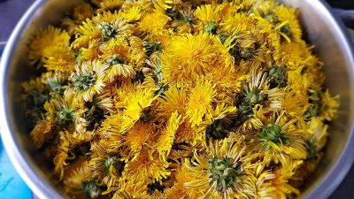 Pierwszym krokiem jest zebranie wczesnych kwiatów mniszka lekarskiego, najlepiej bez łodyg. Po zebraniu, rozłóż kwiaty na dużym stole, aby mogły nieco zwiędnąć i pozwól owadom opuścić płatki. Następnie, wrzuć je do dużego garnka, dodaj plasterki cytryny i pomarańczy (wraz ze skórką, najlepiej ekologiczną) i zalej dwoma litrami wody.