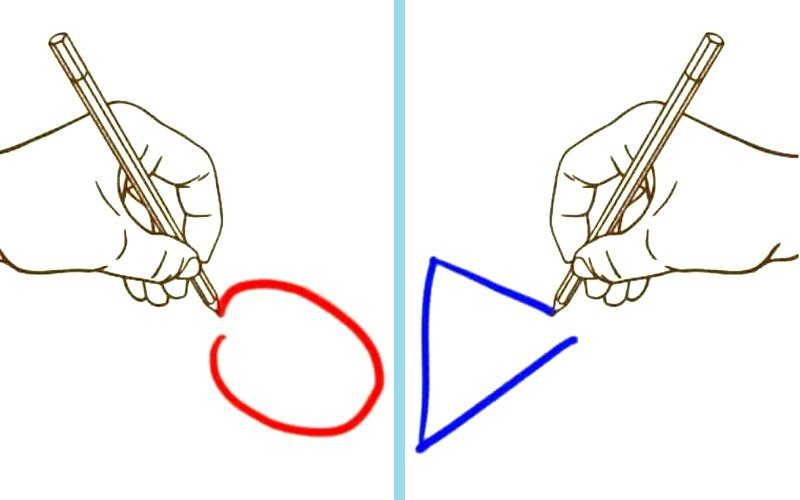 Żeby przystąpić do tego zadania przygotuj dwie kartki papieru, ołówek, kredki lub inne przybory do pisania. Ćwiczenie polega na jednoczesnym rysowaniu geometrycznych kształtów obiema rękami, przy czym na jednej kartce narysuj okrąg, a na drugiej trójkąt.