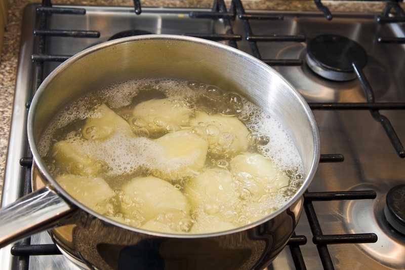Po ugotowaniu, zostaw ziemniaki, aż ostygną. Następnie zmiel je wraz z wodą, w której były gotowane. Zrób to za pomocą miksera lub blendera i mieszaj, aż do gładkiej papki.
