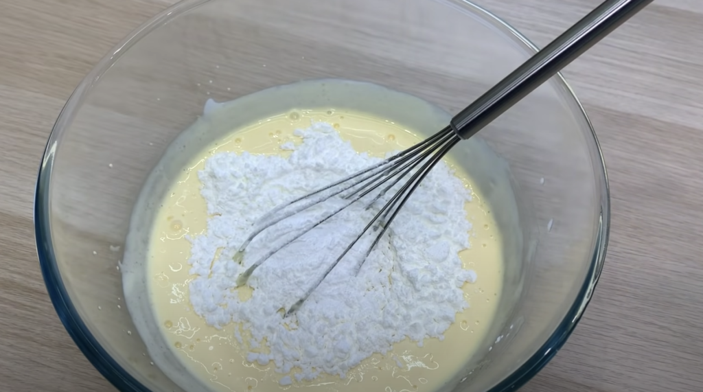 Teraz, wpleć do tego magicznego eliksiru skrobię kukurydzianą i proszek do pieczenia.