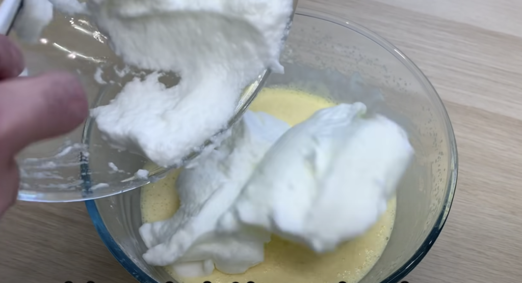 Delikatnie włącz białka do reszty składników, zachowując lekkość ciasta jak najdłużej.