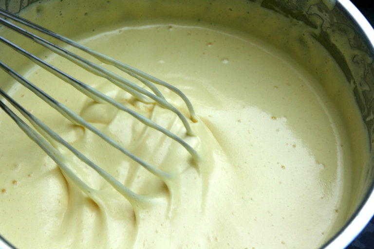 Wymieszać 4 całe jajka z cukrem i cukrem waniliowym. Do masy dodać mleko i ogrzewać w kąpieli wodnej. Całość mieszać aż krem zgęstnieje, po czym krem należy odstawić do wystygnięcia.