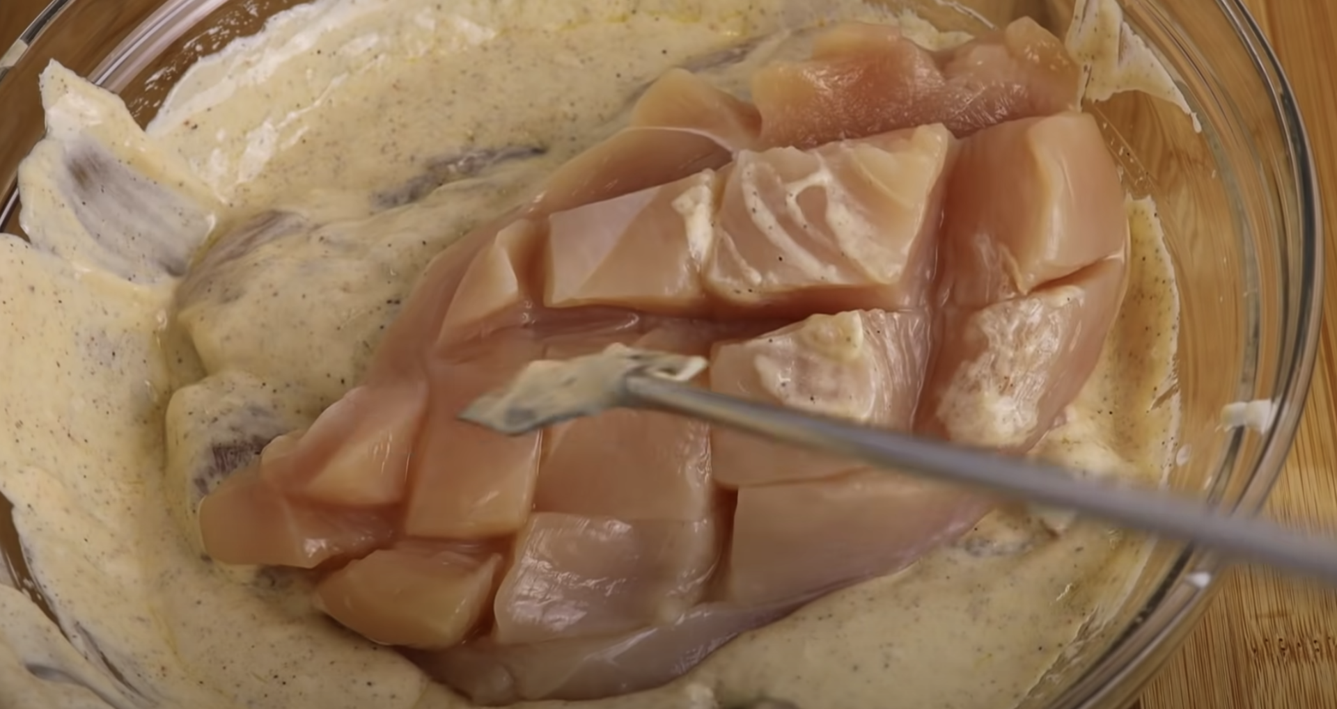 Włóż wcześniej przygotowane piersi do sosu. Dokładnie obtoczy każdą stronę mięsa w marynacie.