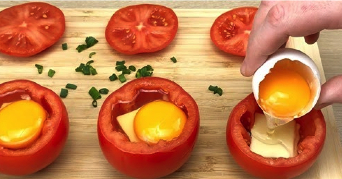 Wsyp posiekany szczypiorek do pomidorów. Umieść w każdym po kawałku sera.