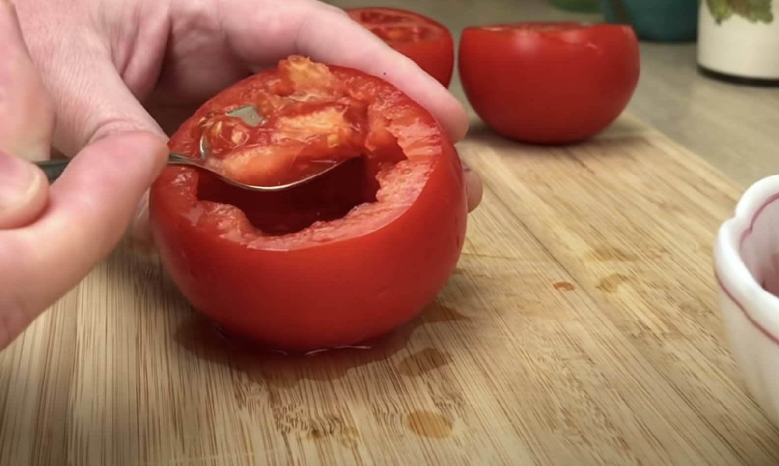 Wybierz wnętrze za pomocą łyżeczki (możemy je później wykorzystać do sosu lub zupy pomidorowej).