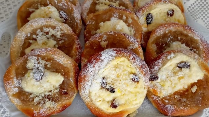 Puszyste drożdżówki z twarogiem i gruszkami – procedura przygotowania