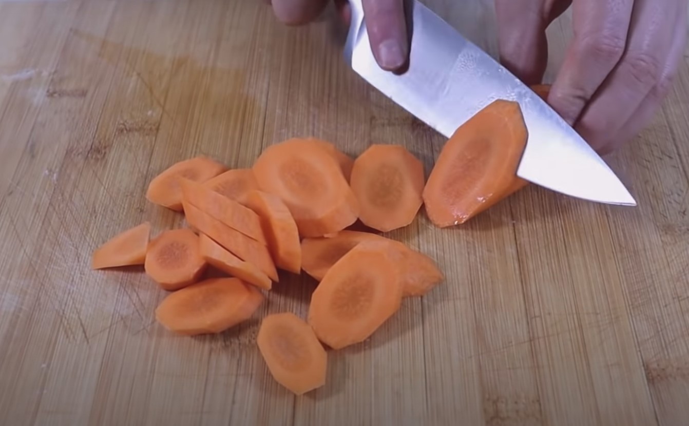 Gdy mięso będzie gotowe, odsączyć olej z patelni i podsmażyć marchewki na oliwie z oliwek.