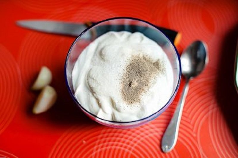 Pokrój ogórek na małe kawałki i posiekaj koperek. W robocie kuchennym wymieszać majonez, jogurt i pieprz.