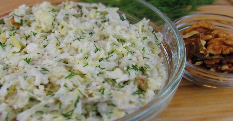 Aby uzyskać jeszcze lepszy efekt, można dodać seler, marchew i cebulę. Ważne jest, abyś zrozumiał, że im drobniej posiekana sałatka, tym będzie delikatniejsza.
