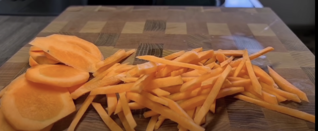 Wskazówka: aby uzyskać piękny efekt, użyj różnokolorowych papryk. Zetrzyj trzy marchewki na grubej tarce lub po prostu pokrój w paski.