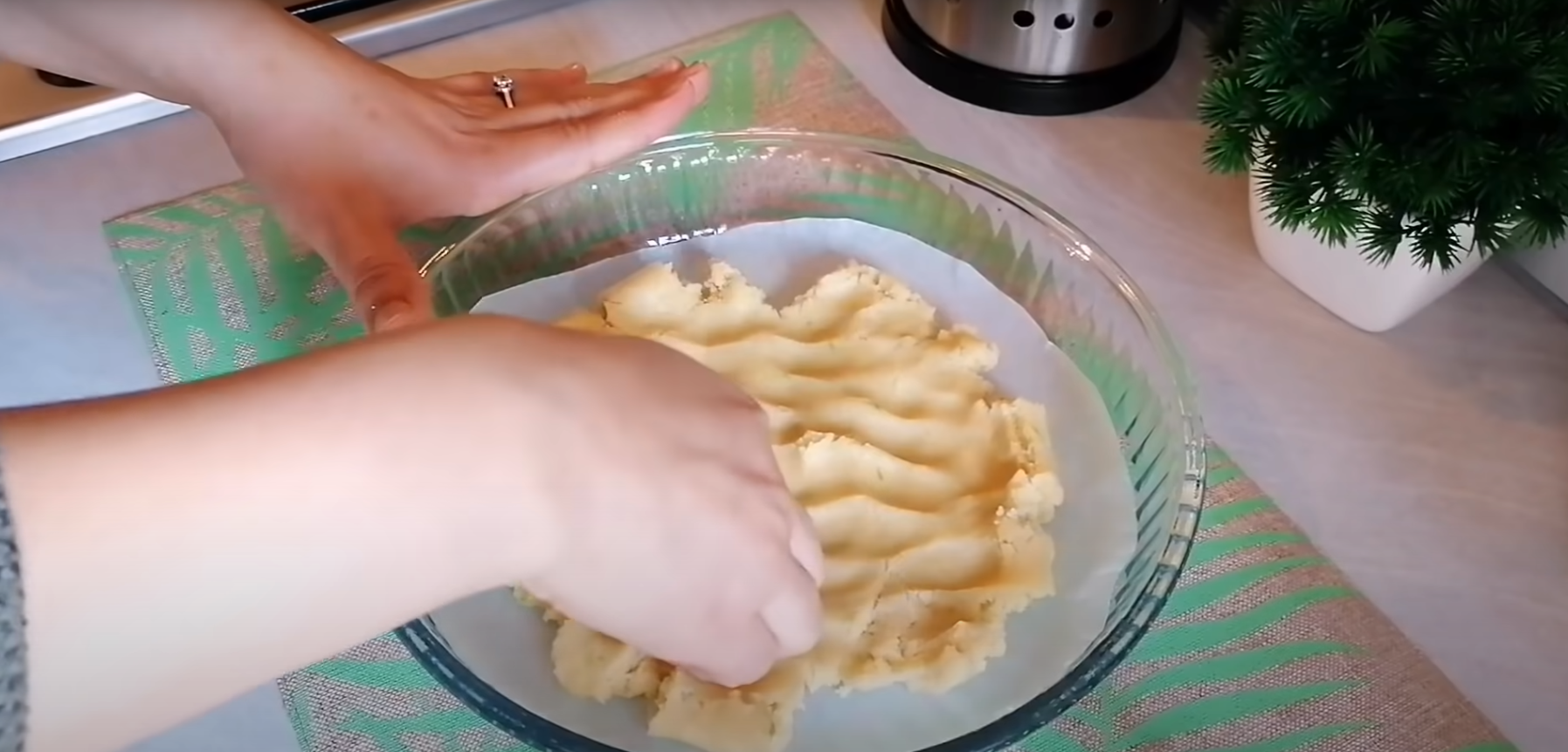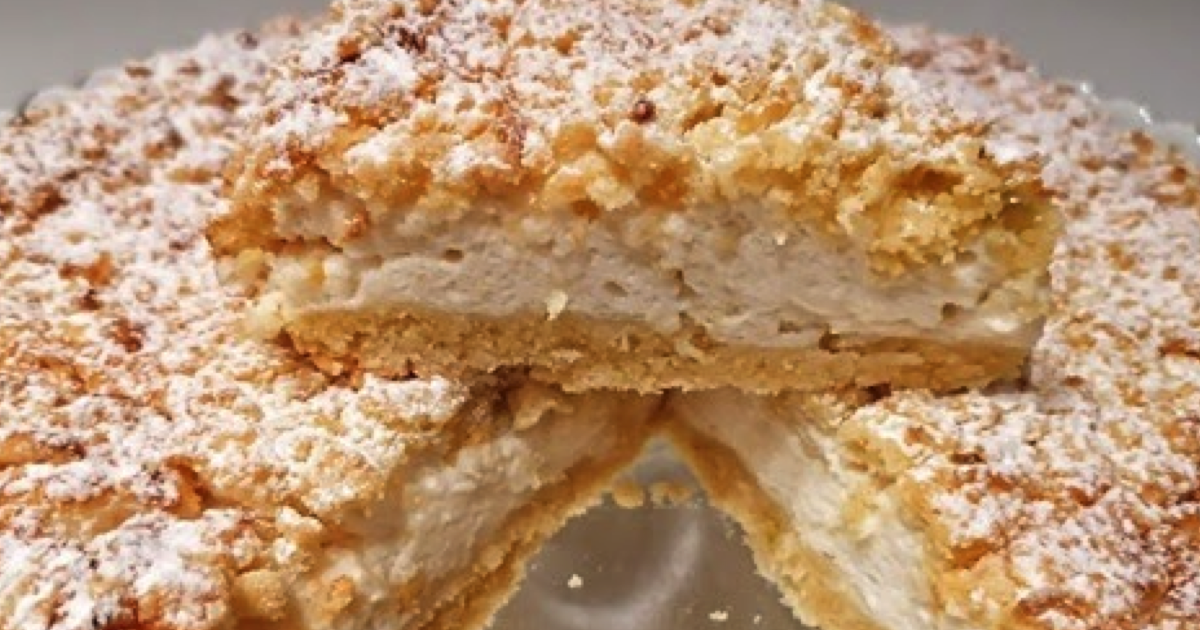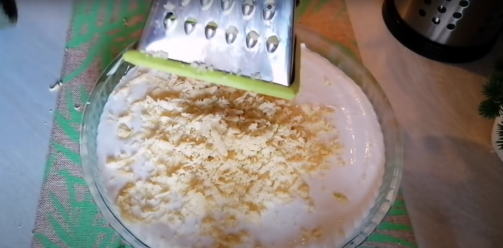 Po upływie 30 minut możesz przystąpić do składania placka. Wyjmij ciasto z zamrażarki i pierwszą część rozprowadź na wybranej formie wyłożonej papierem do pieczenia. Później przełóż na nią cały krem. Drugą połowę ciasta zetrzyj na tartce bezpośrednio na warstwę kremu, dbając, by przykryć go w całości.