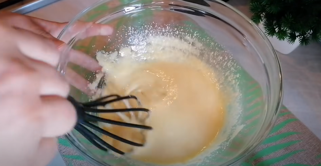 Żółtka połącz w misce razem z cukrem, a następnie dodaj płynne masło i ponownie wymieszaj.