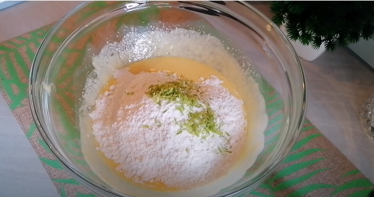 Dodaj resztę składników (mąkę, startą skórkę cytryny, sól, proszek do pieczenia). Mieszaj całość, dopóki nie uzyskasz gładkiego, jednolitego ciasta.