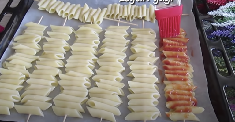 Ułóż szaszłyki na blasze do pieczenia lub na tacy.
