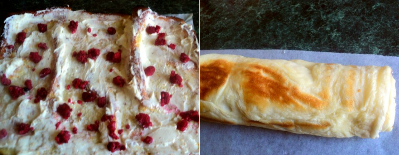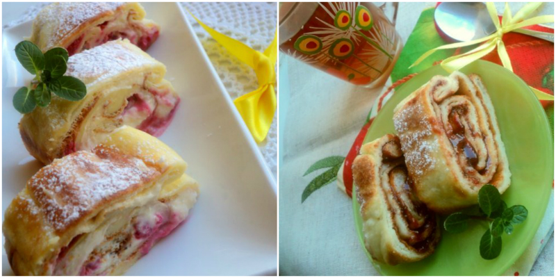 Przygotuj nadzienie, twaróg utrzyj z cukrem. Jeśli masa jest zbyt sucha, dodaj kilka łyżek śmietany lub jogurtu. Posmaruj farszem naleśnika, dodaj np. jagody, zwiń w rulon. Podawaj pokrojony w grubsze plastry posypane cukrem pudrem.