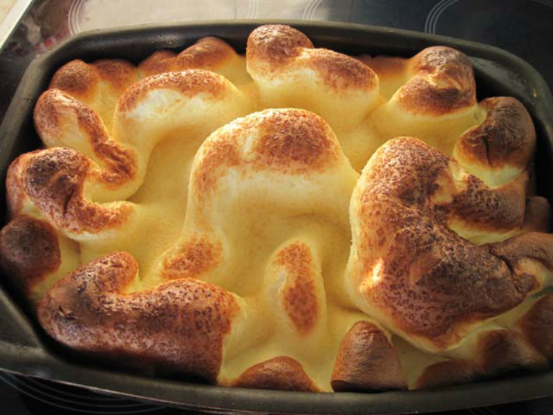5 minut przygotowań i 20 minut pieczenia . Na śniadanie – po prostu cud! Nie przejmuj się, jeśli naleśnik wyrośnie zbyt mocno w procesie pieczenia. Osiądzie po ochłodzeniu. Fińskie naleśniki można podawać ze wszystkim: z dżemem, śmietaną, miodem. A jeśli zmniejszysz ilość cukru w cieście, możesz również zamienić farsz na słony (tarty ser, mięso mielone, warzywa, grzyby).