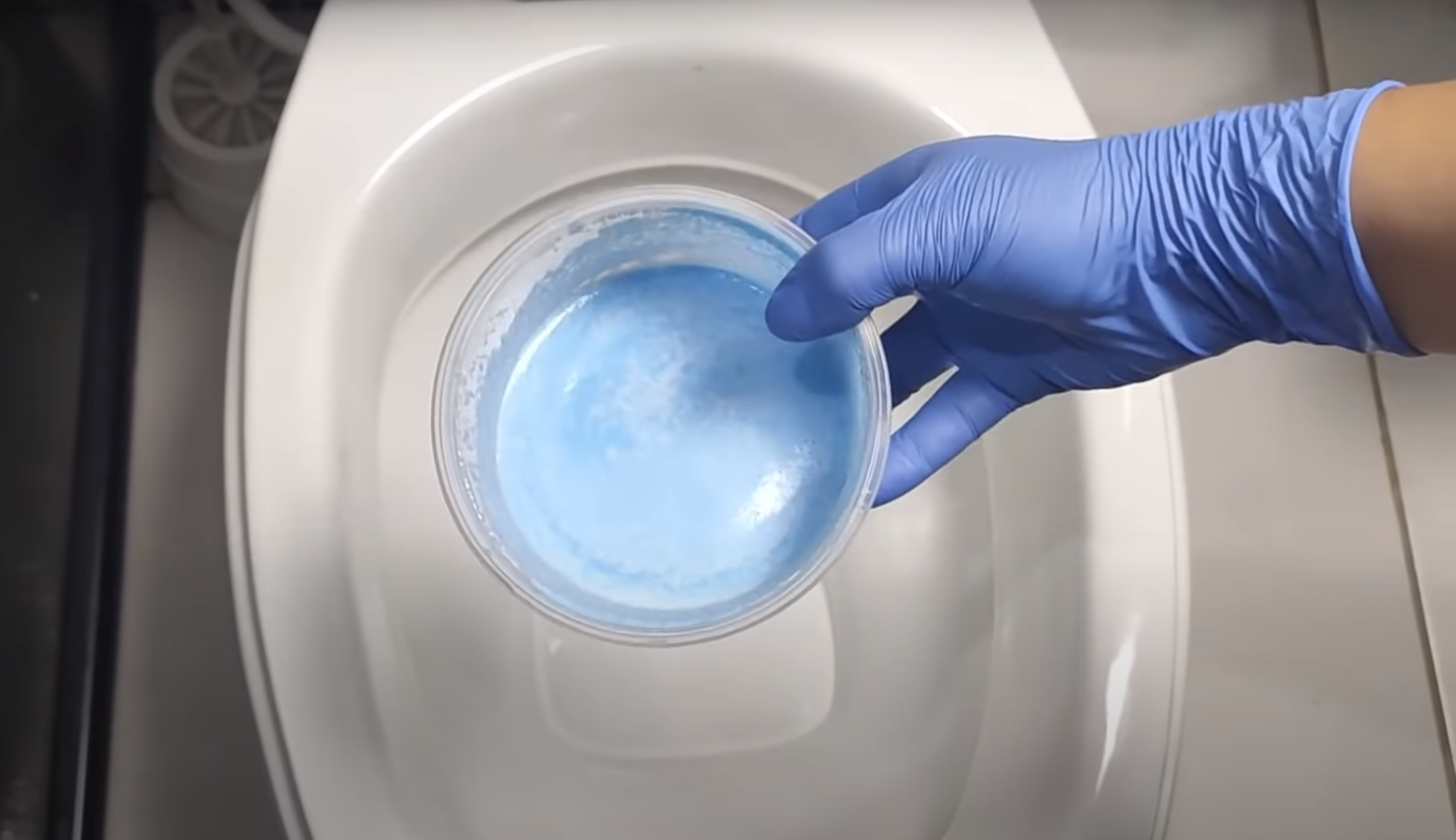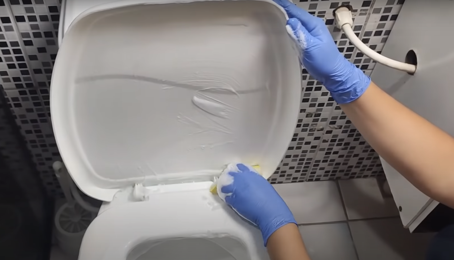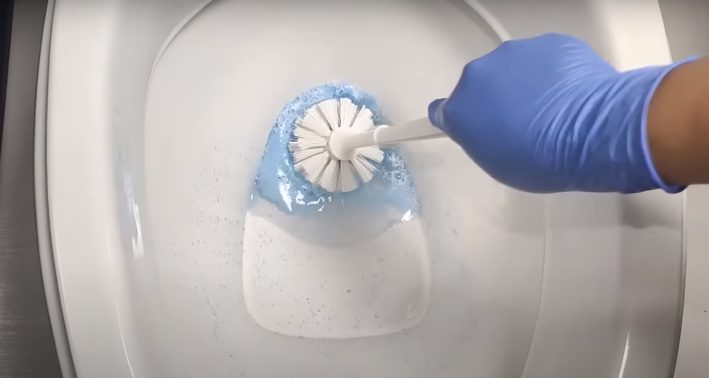 Mieszankę należy wlać do muszli klozetowej. Następnie należy wyszorować wnętrze muszli klozetowej szczotką, a potem umyć ją mieszanką z góry.