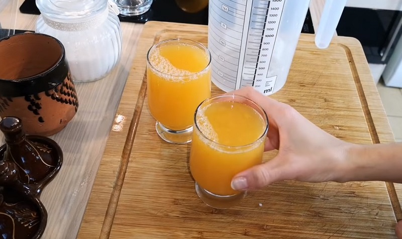 Sok z mandarynek należy wycisnąć, pozbyć się pestek i miąższu.