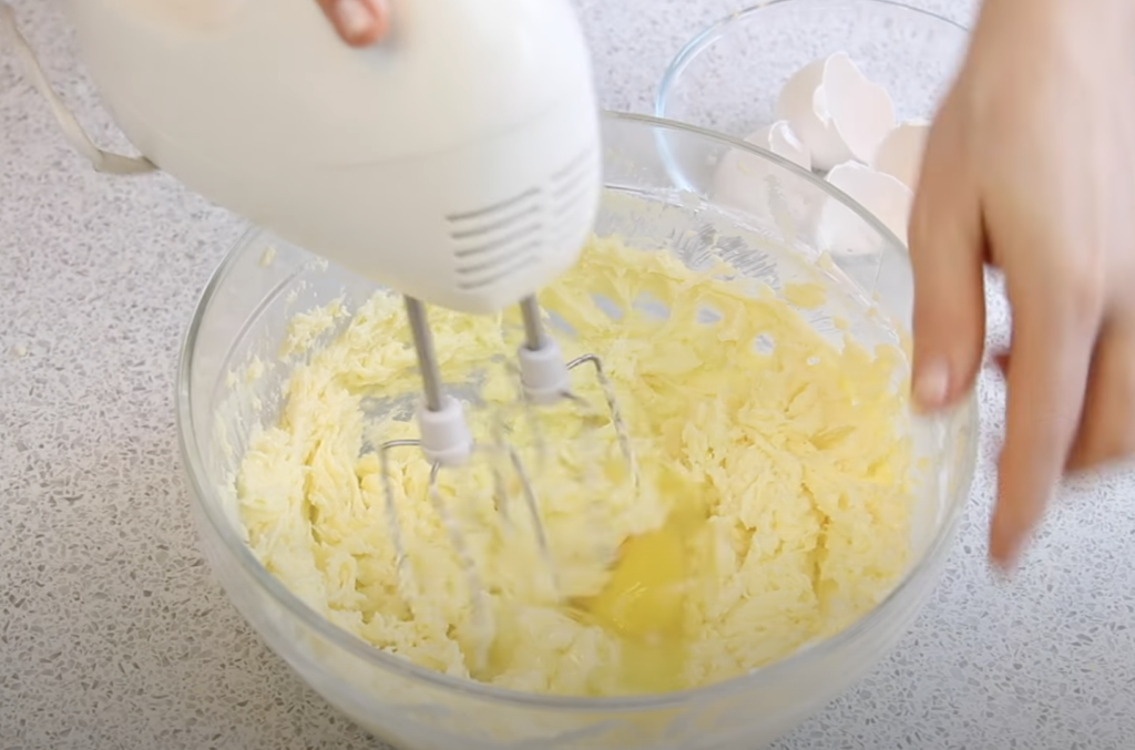 Masło ubić z cukrem przy pomocy miksera. Następnie dodaj jajka, sól, proszek do pieczenia i stopniowo dosypuj mąkę. Mieszaj aż do uzyskania gładkiej, jednolitej masy.