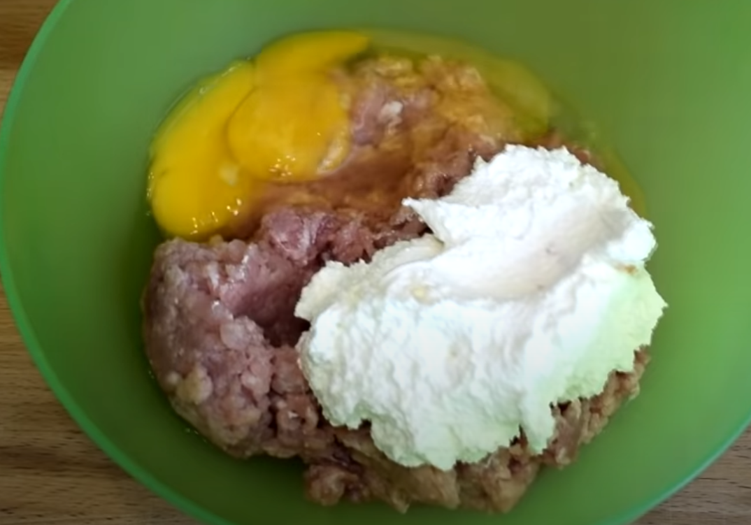 W misce wymieszaj twaróg z użyciem miksera. Dorzuć całe jajka, mięso mielone, pieprz i sól. Całość zmiksuj. Czosnek przeciśnij przez praskę, a cebulę zetrzyj na tarce, następnie wszystko dodaj do mięsa. W osobnym naczyniu wymieszaj wodę z bułką tartą. Kolejno połącz to z mięsem.