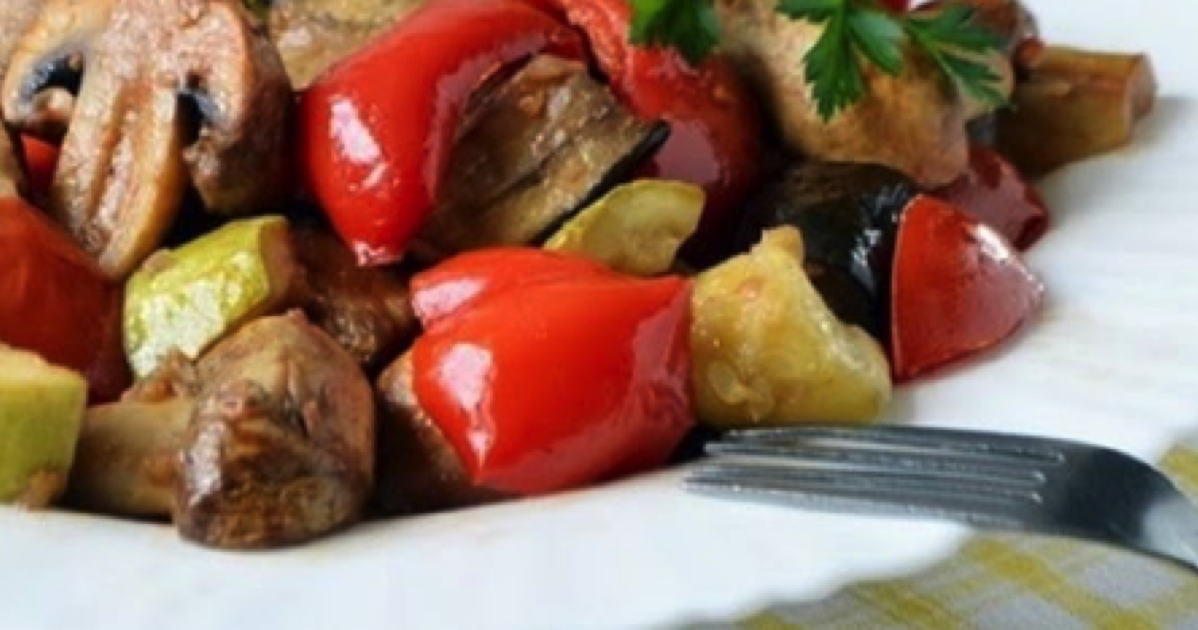 Warzywa z pieczarkami upieczone w piekarniku to sposób na pyszny, niedrogi i prosty w wykonaniu obiad lub ciepłą kolację.