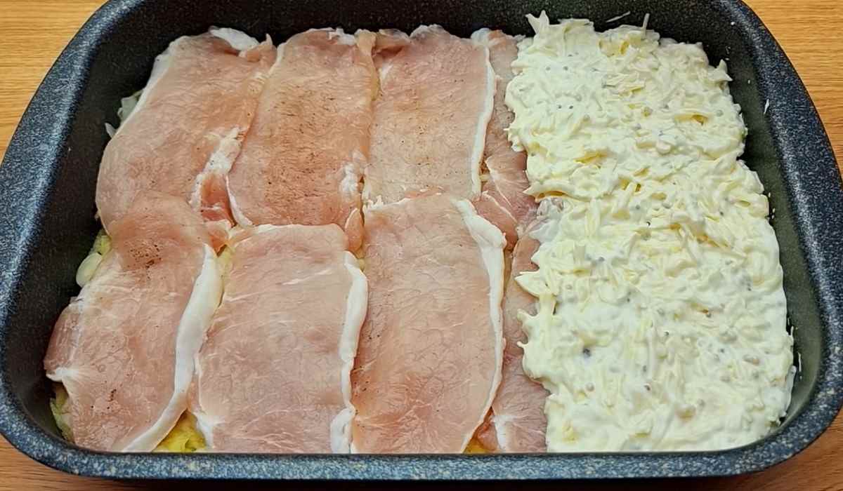 Po zakończeniu tego etapu dodaj kolejną warstwę kawałków mięsa. Podczas gdy mięso się gotuje, przygotuj sos.